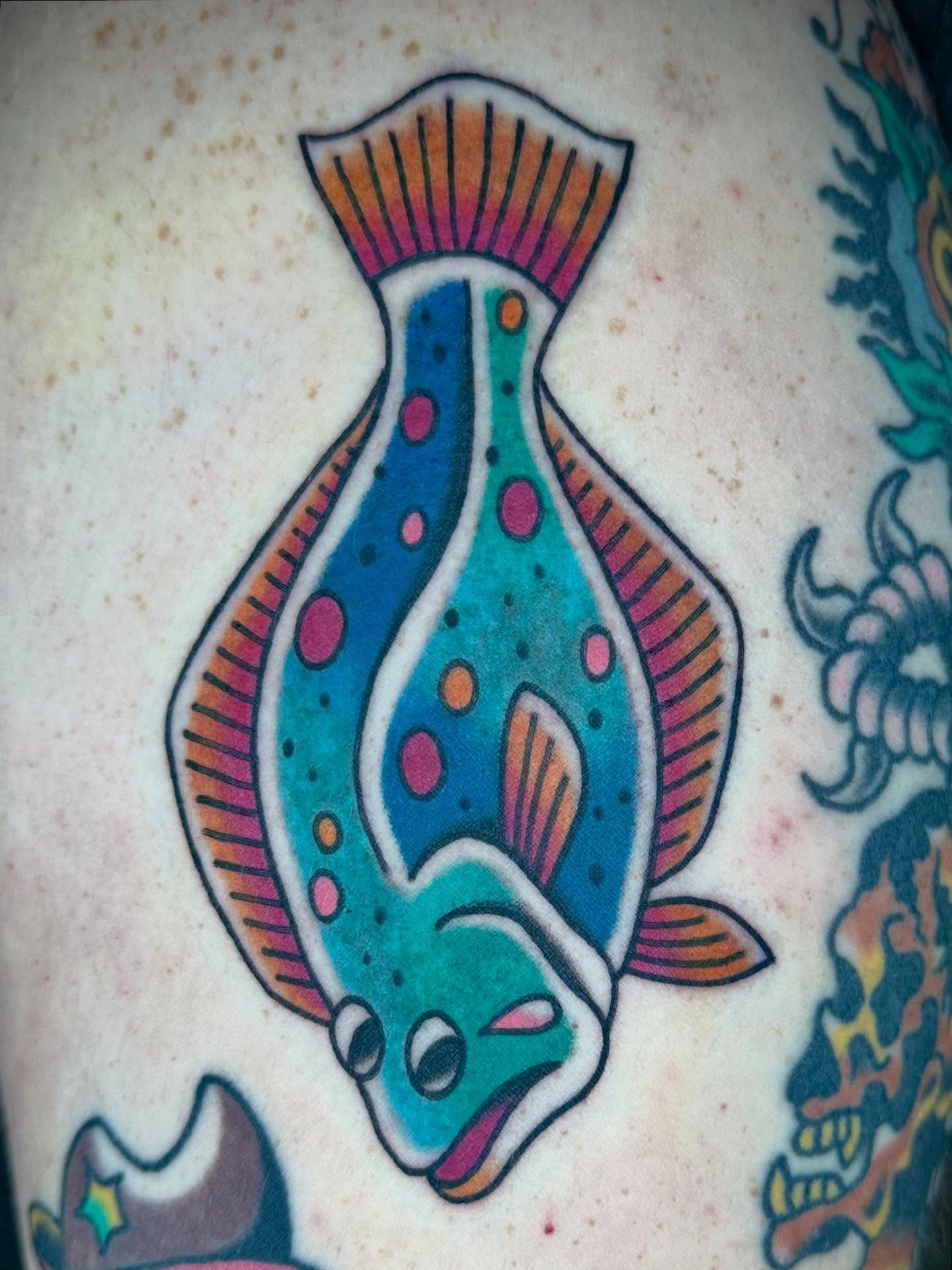 #floundertattoo #fishtattoo #rabbitmoontattoo #fortworthtattooartist #dfwtattooartist